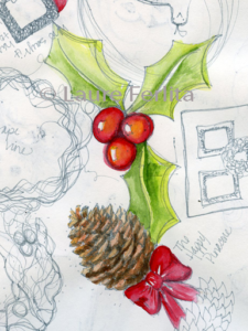 ‘Tis The Season is going to be a series of lessons presented over a period of a year with a new assignment posted on the first Wednesday of each month. Each class will include two separate elements – art and lettering – with styles varying each month. The monthly project can be created in your sketchbook or as a standalone piece of art.